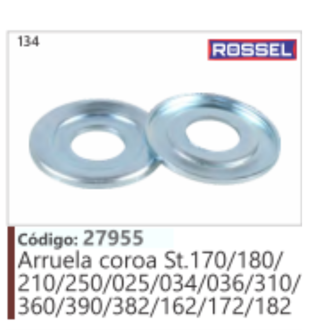 134 Código 27955 Arruela coroa Stihl 170/180 /210/250/025/034 /036/310/360 /390/382/162/ 172/182 ROSSEL