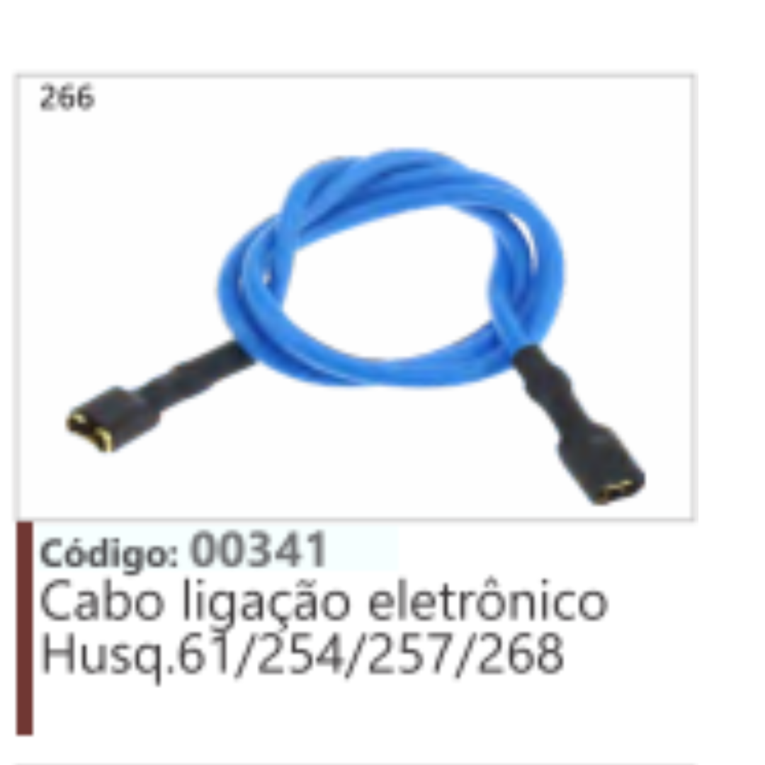 A imagem mostra um cabo de ligação eletrônico para motosserras Husqvarna modelos 61, 254, 257 e 268.