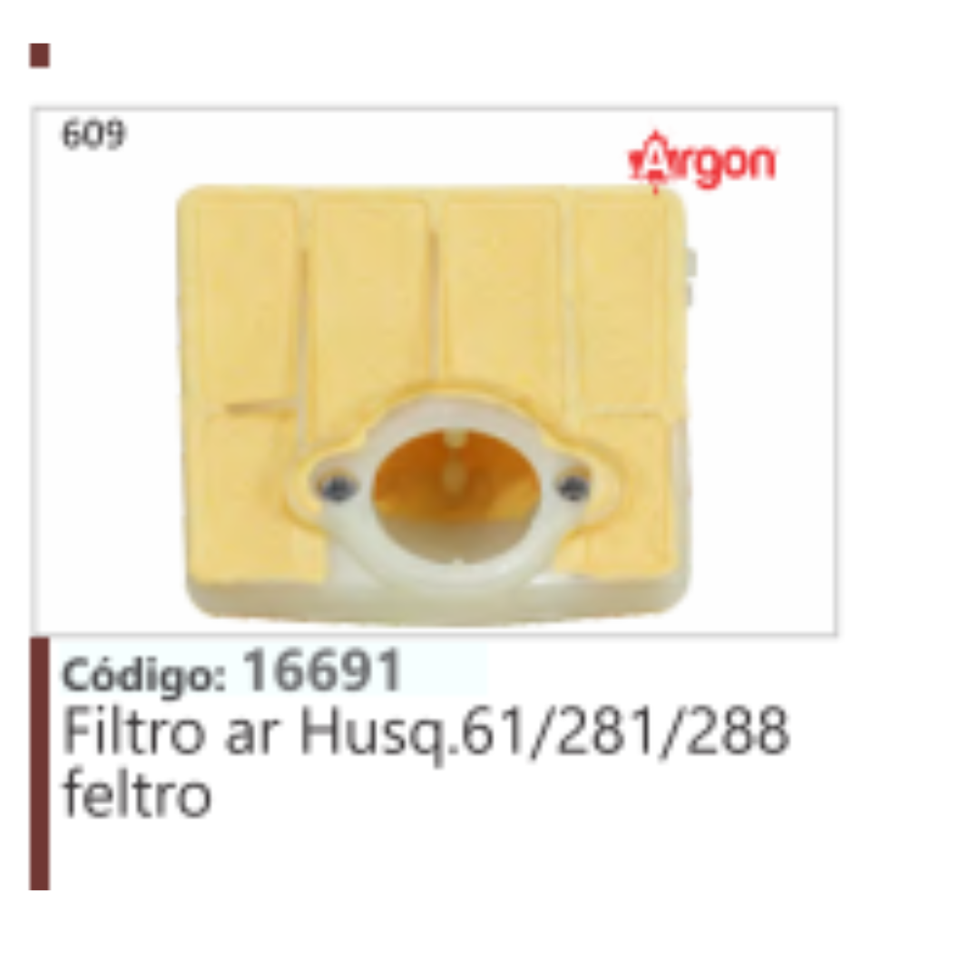 609 Código 16691 Filtro ar Husqvarna 61/281/288 feltro ARGON