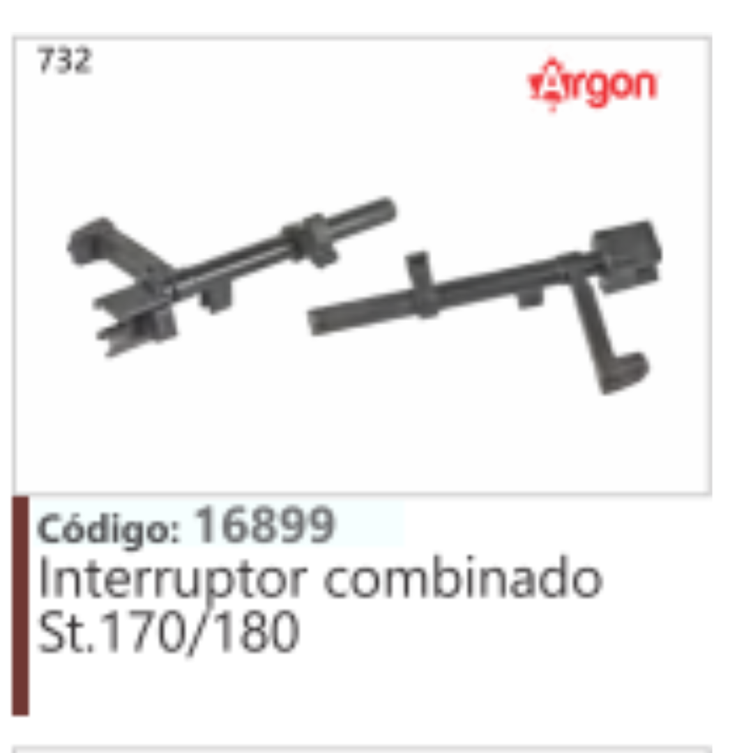 O item na imagem é um interruptor combinado, código 16899, da marca Argon. Ele é uma peça de reposição compatível com motosserras Stihl dos modelos MS 170 e MS 180.