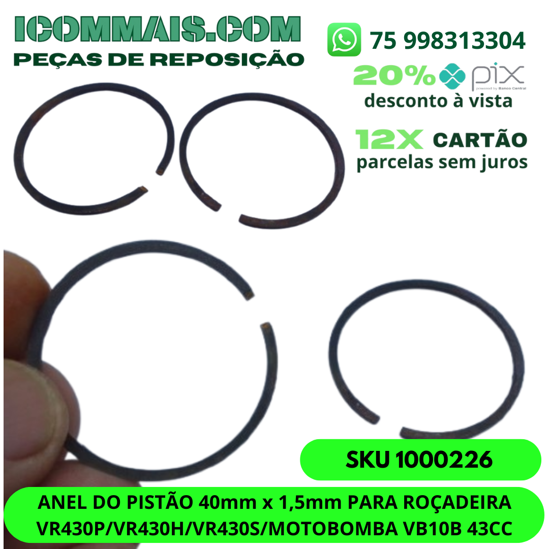 ANEL DO PISTAO 40mm x 1,5mm PARA ROCADEIRA VR430P/VR430H/VR430S/MOTOBOMBA VB10B 43CC
