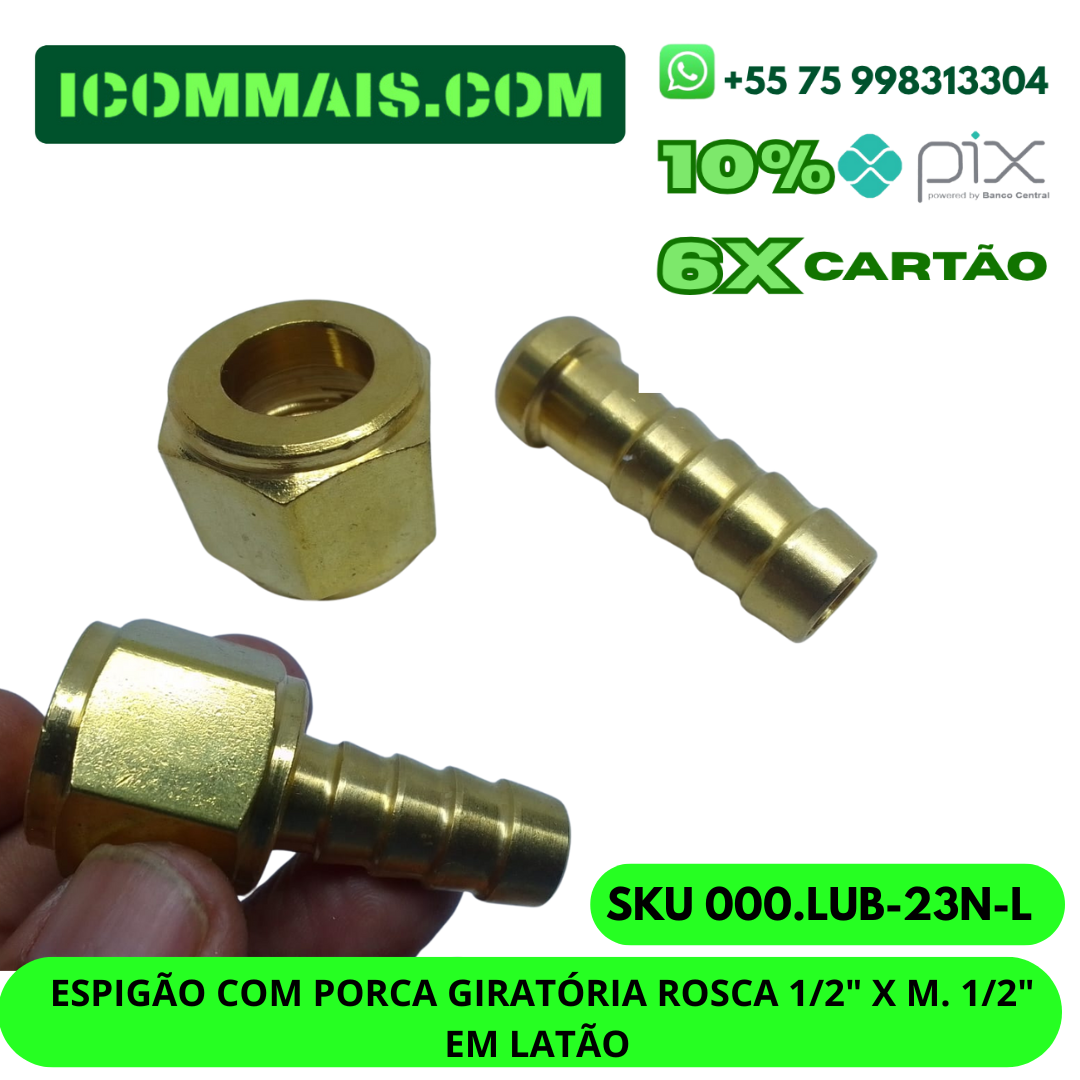 000.LUB-23N-L – ESPIGÃO COM PORCA GIRATÓRIA ROSCA 1/2″ X M. 1/2″ EM LATÃO