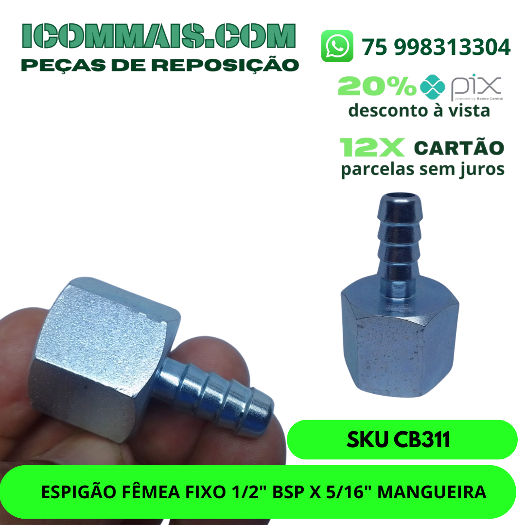 CB311 – ESPIGÃO FÊMEA FIXO 1/2″ BSP X 5/16″ MANGUEIRA