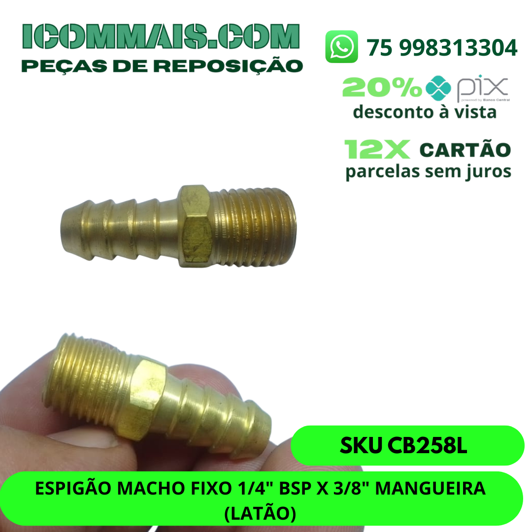 CB256L – ESPIGÃO MACHO FIXO 1/4″ BSP X 5/16″ MANGUEIRA (LATÃO)