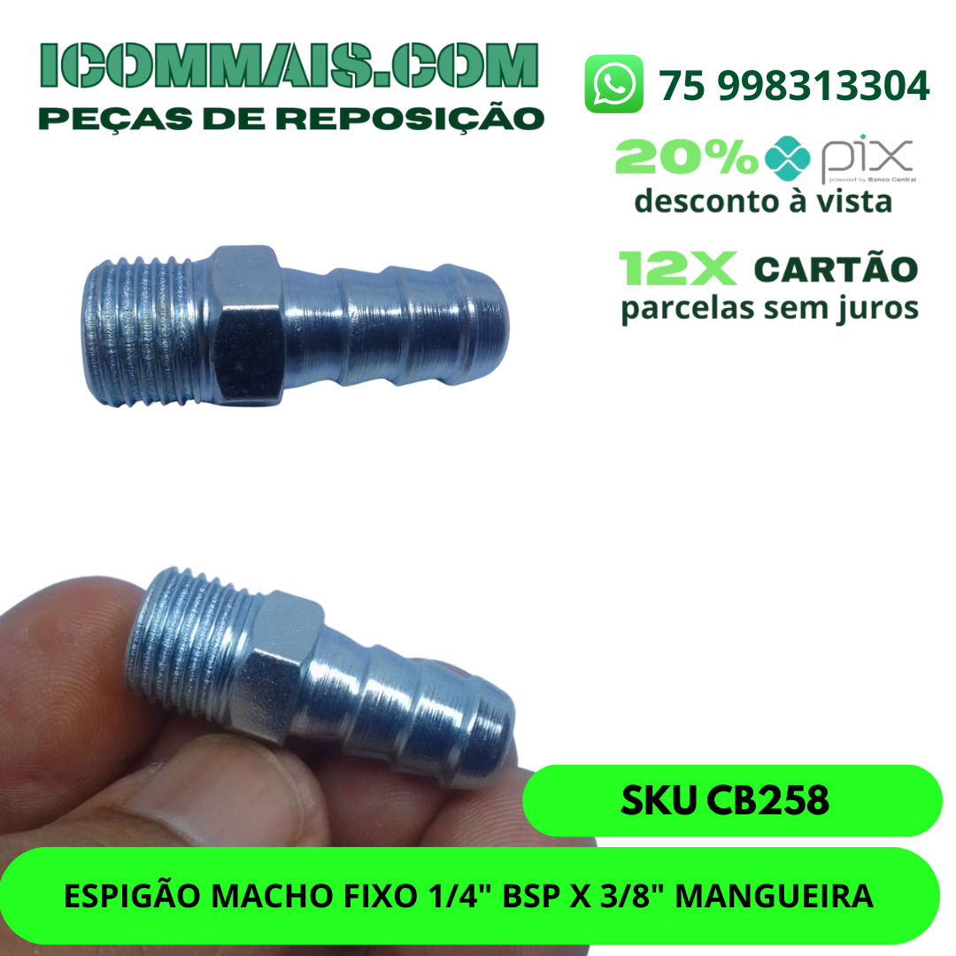 CB258 – ESPIGÃO MACHO FIXO 1/4″ BSP X 3/8″ MANGUEIRA