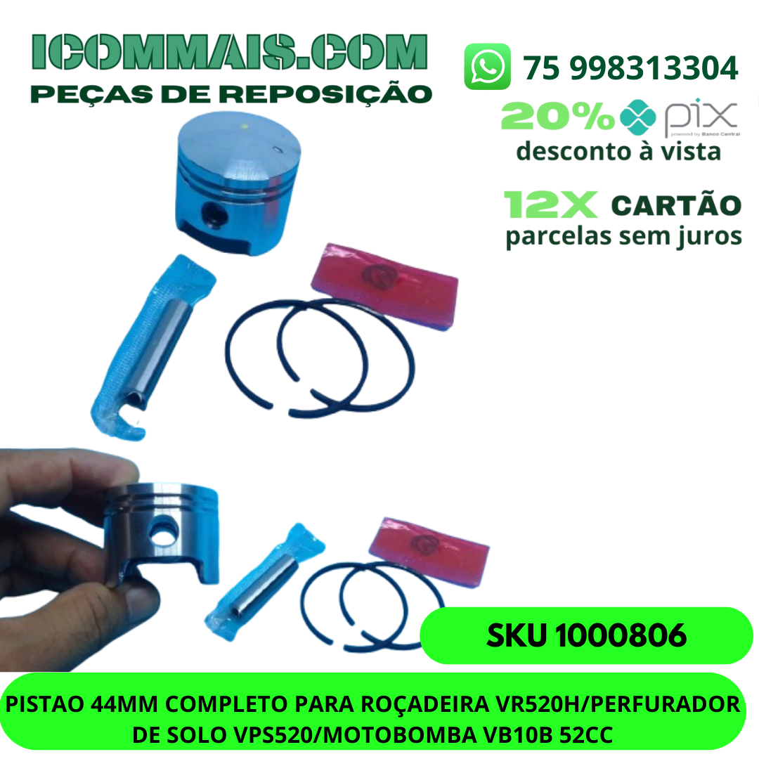 1000806 – PISTAO 44MM COMPLETO PARA ROÇADEIRA VR520H/PERFURADOR DE SOLO VPS520/MOTOBOMBA VB10B 52CC