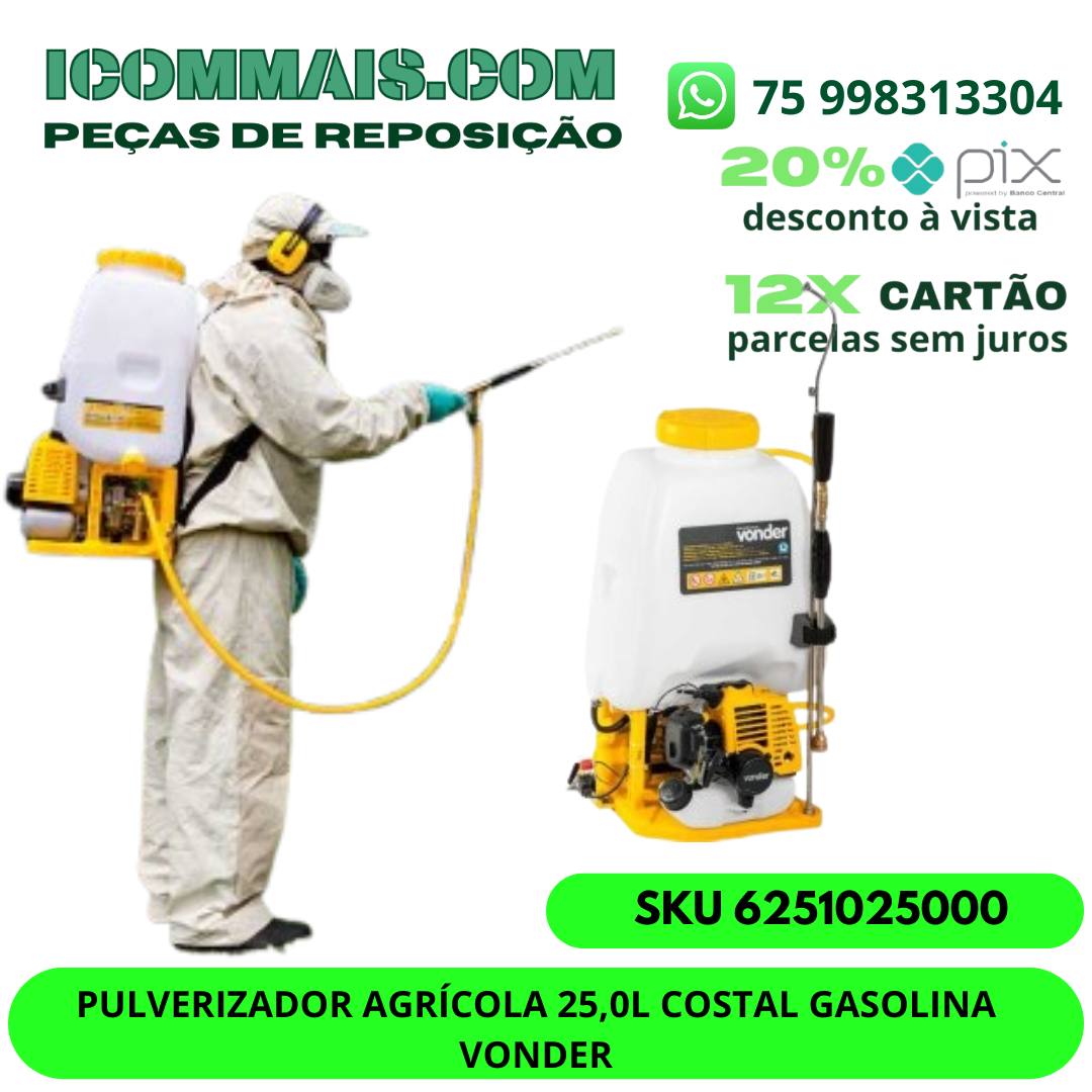 Ótimo desempenho e ergonomia para pulverização em áreas agrícolas para prevenção, controle e combate de pragas. Só é permitido usar produtos químicos líquidos que possam ser diluídos em água. Não utilizar com produtos que contenham solventes, ácidos, materiais inflamáveis ou tintas. O equipamento deve ser utilizado somente com acessórios compatíveis.