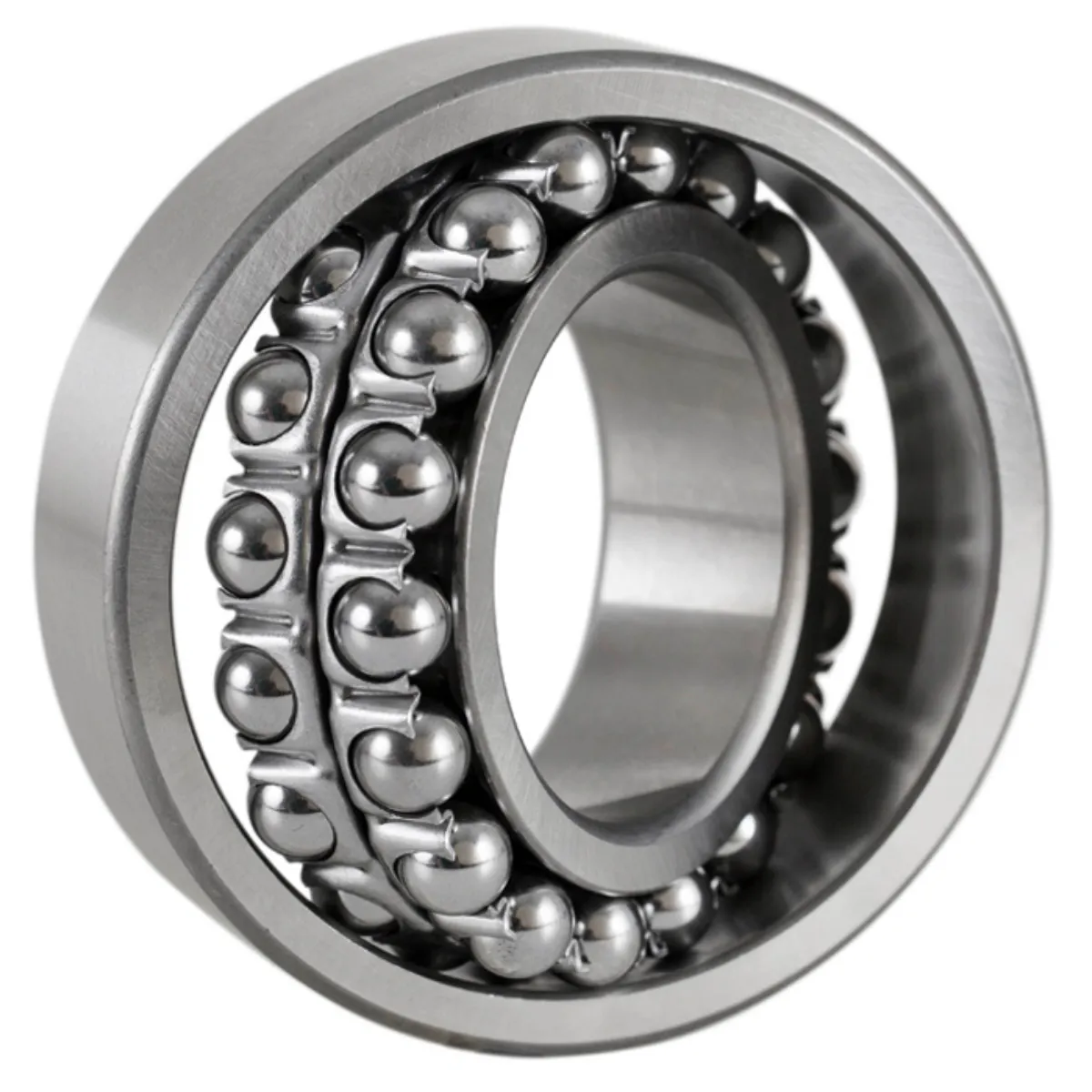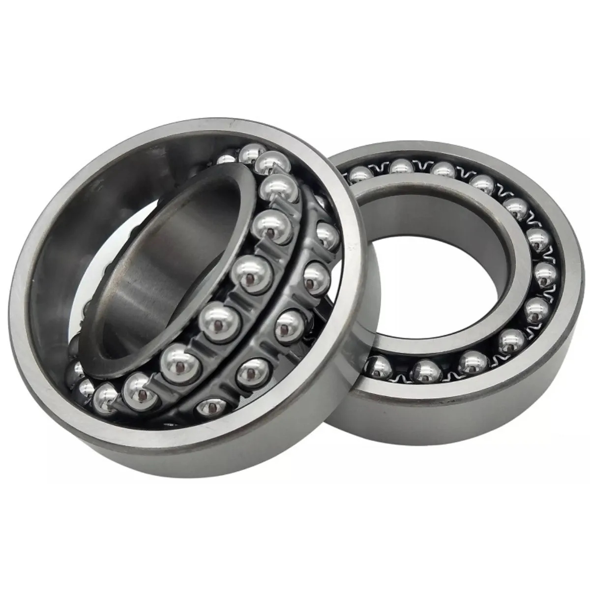 Por característica, estes rolamentos possuem no anel interno duas pistas e pista esférica no anel externo. O centro do raio que forma esta superfície esférica é coincidente ao centro do rolamento e, consequentemente, o anel interno, as esferas e a gaiola inclinam-se livremente em relação ao anel externo.